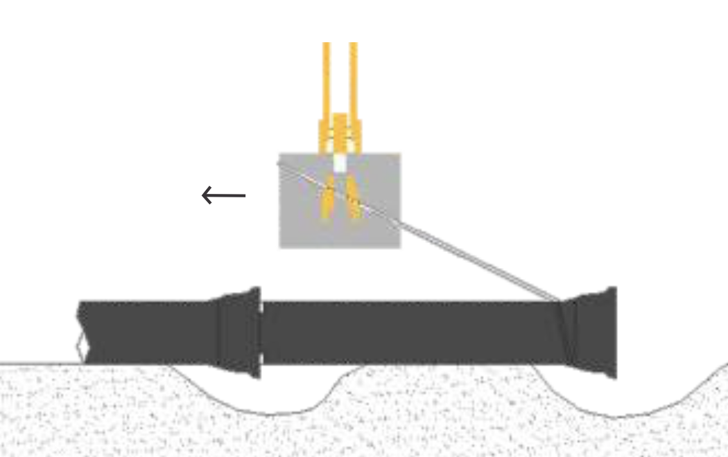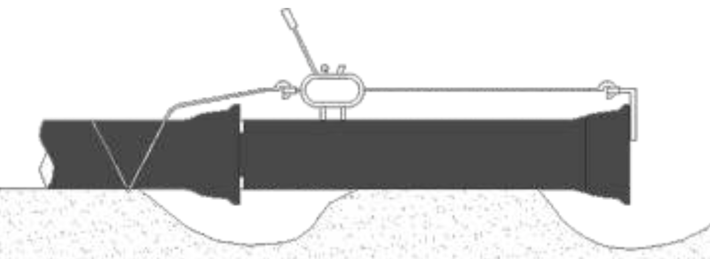 В этом методе труба сначала размещается для соединения так, чтобы конец трубы (spigot) находился у входа в муфту. Вокруг трубы оборачивается строп в оболочке и прикрепляется к ковшу экскаватора или обратной лопаты. Затем ковш оттягивается назад, затягивая трубу в муфту.