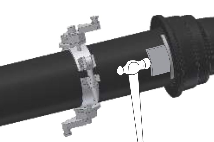Если при сборке соединения возникают трудности, гладкий конец необходимо снять и повернуть на 90° перед повторной попыткой. Если трудности не прекращаются, муфту следует снять и проверить положение прокладки.