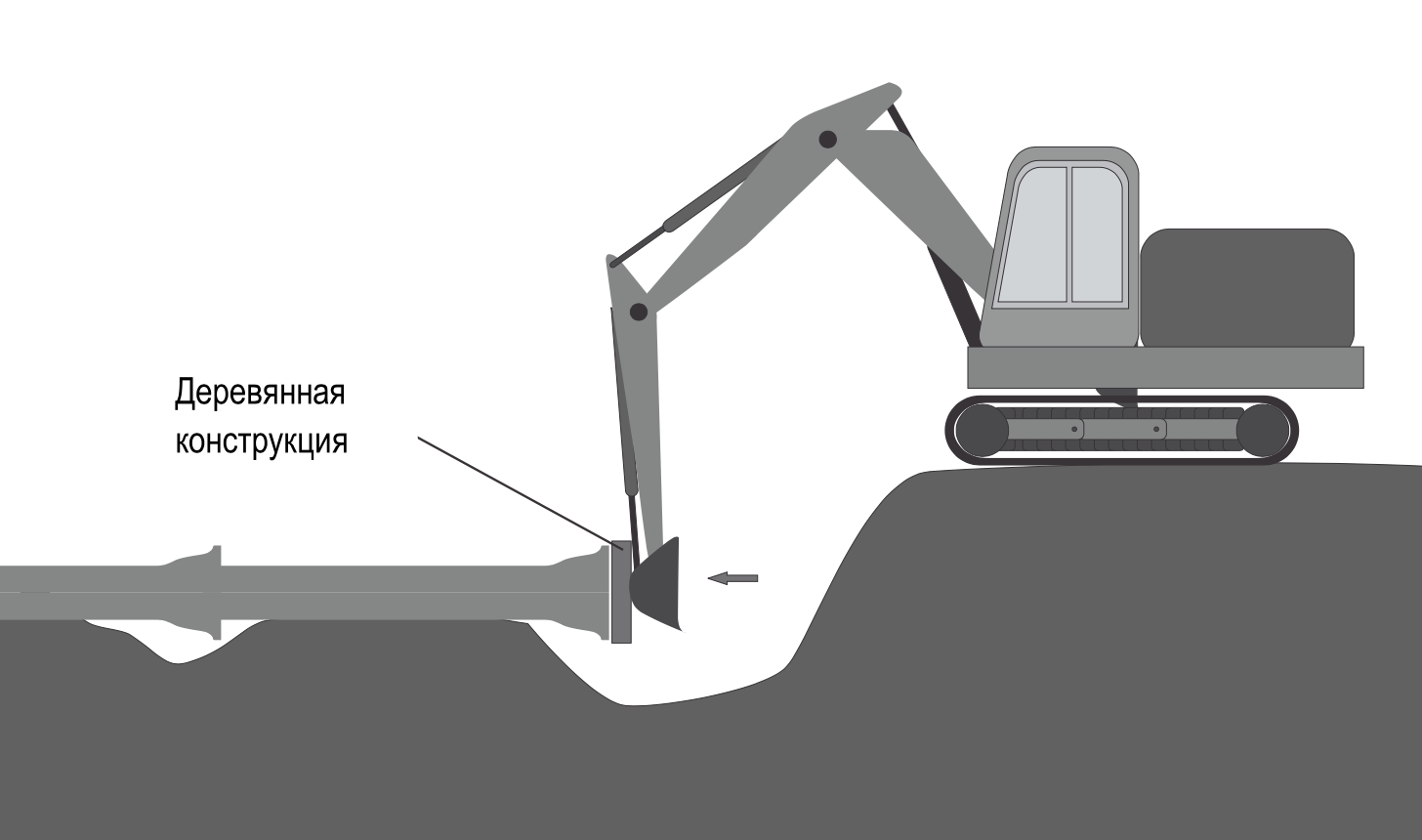 Метод установки трубы с использованием экскаватора (в том числе оснащенного обратной лопатой)