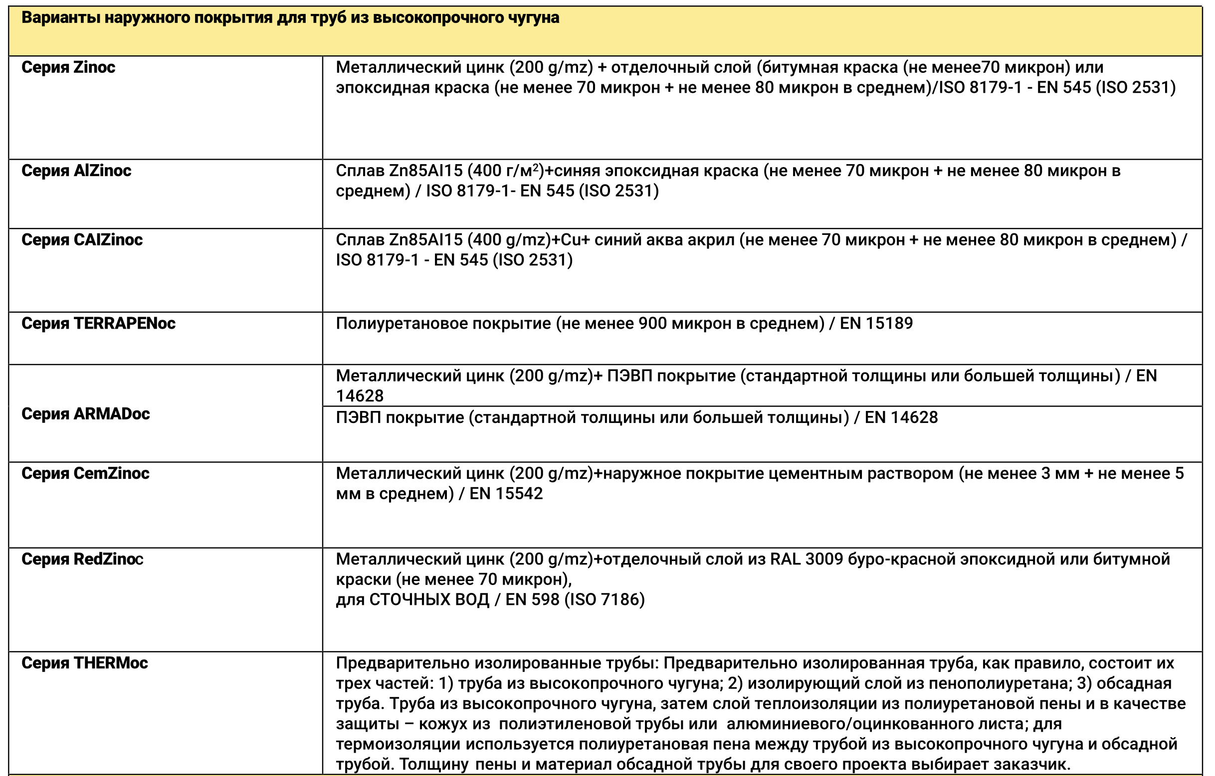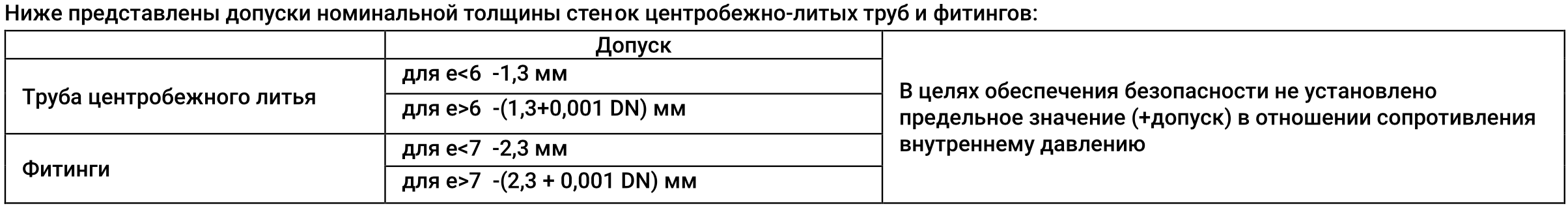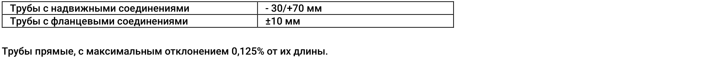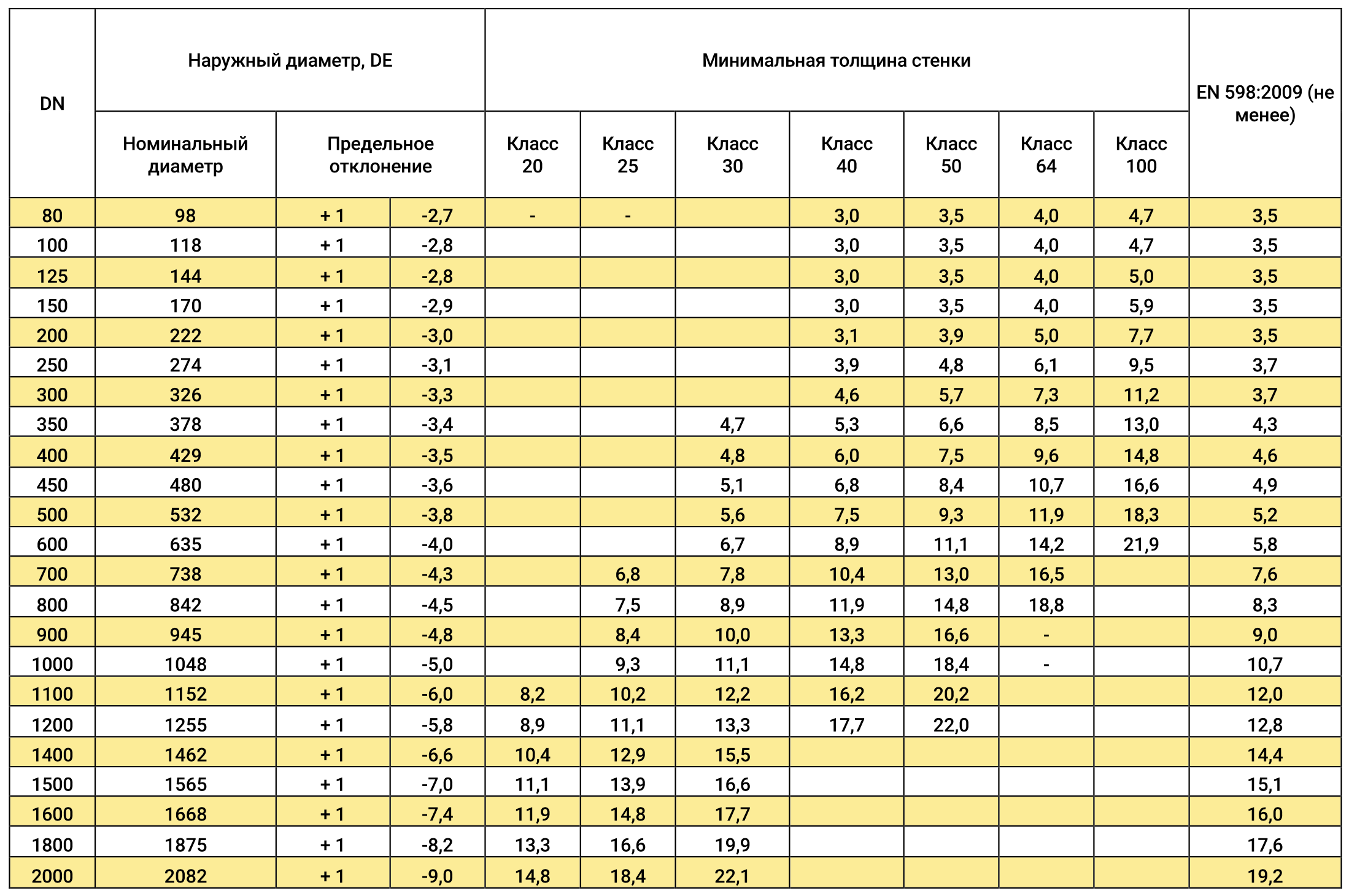 РАЗМЕРЫ ТРУБ СОГЛАСНО EN 545:2010